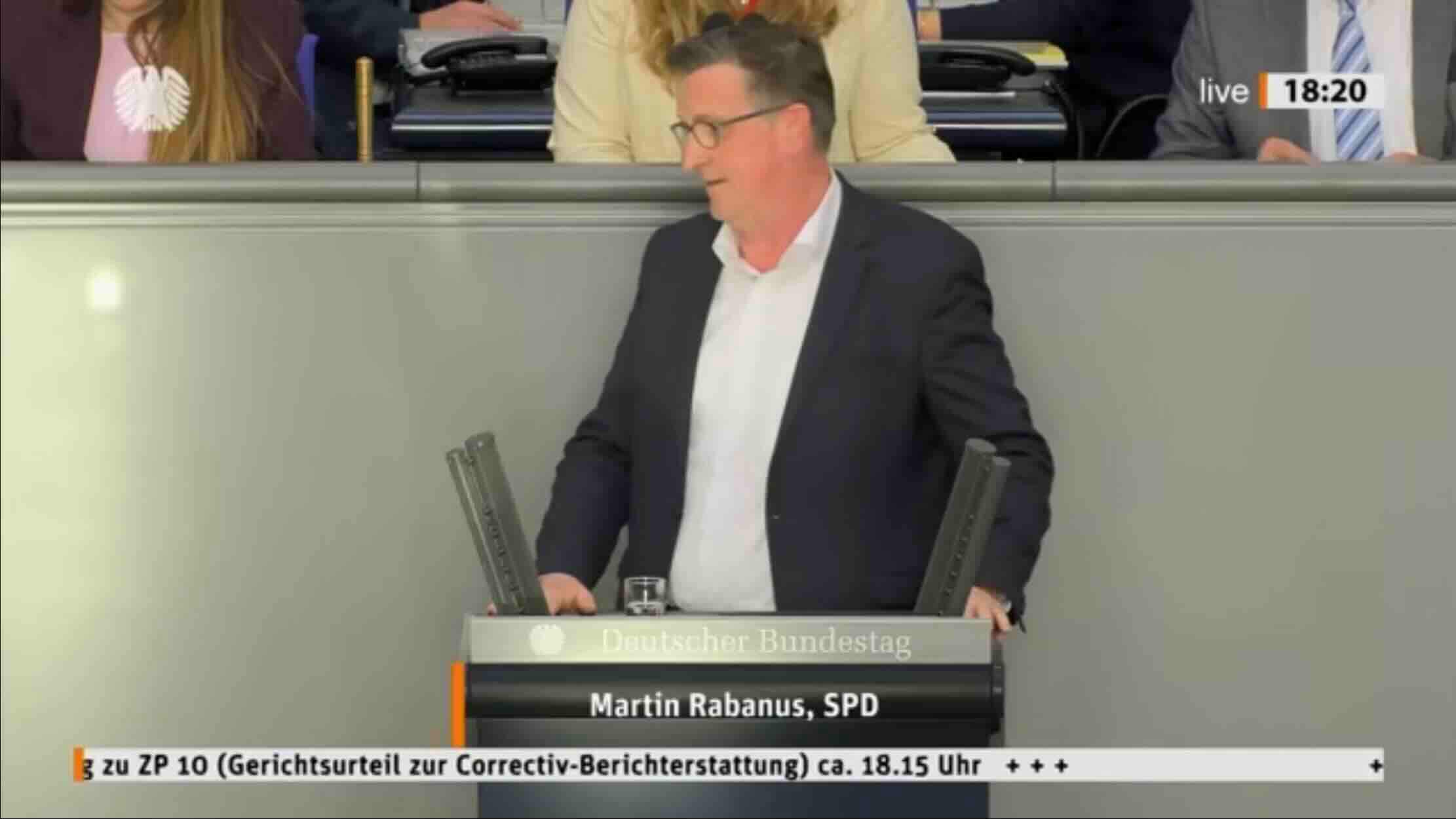 Ein Gerichtsurteil widerlegt Correctiv. Ein SPD-Politiker widerlegt das Urteil. Und der Bundestag schaut zu. Was SPD-Mann Rabanus sagte – und was die Realität dazu sagt.