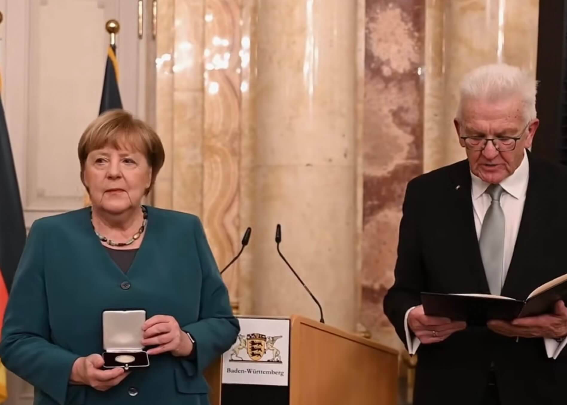 Kretschmann adelt Merkel für pandemische Meisterwerke Medaille für die Pandemie-Patronin