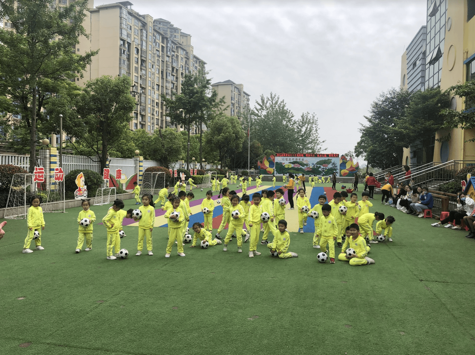 Wir besuchen viele Schulen und manchmal Kindergärten. Als Besucher müssen wir auch dort den Healthcheck per „WeChat“ machen, uns in eine Liste eintragen und das Fieber messen lassen – entweder „per Pistole“ oder automatisch am Eingang.