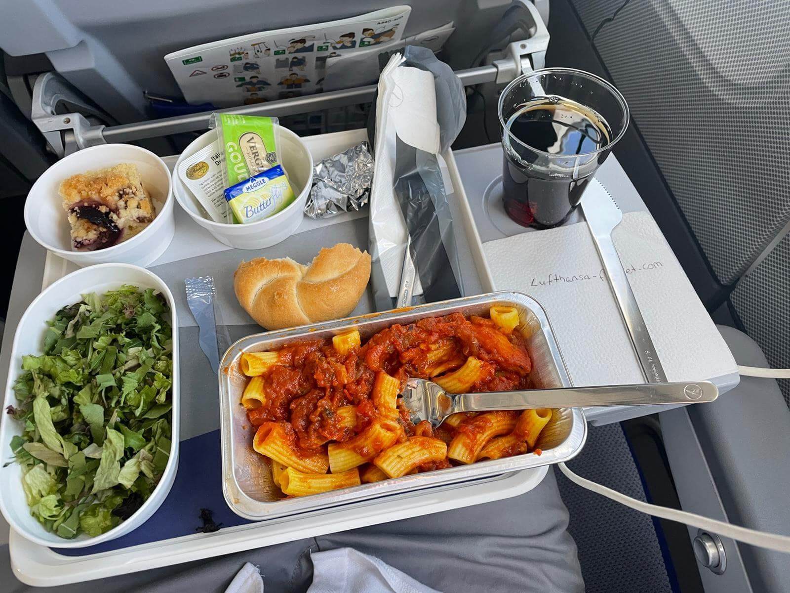 Es gab diese üblichen Sicherheitsanweisungen und dann wurden Kopfhörer verteilt und gefragt, ob alles gut ist. Dann gab es Wasser und als das Flugzeug in der Luft war, gab es etwas zu essen. Man konnte essen, so oft man wollte. Aber ich war ganz müde, ich hatte ja in der Nacht nicht geschlafen.