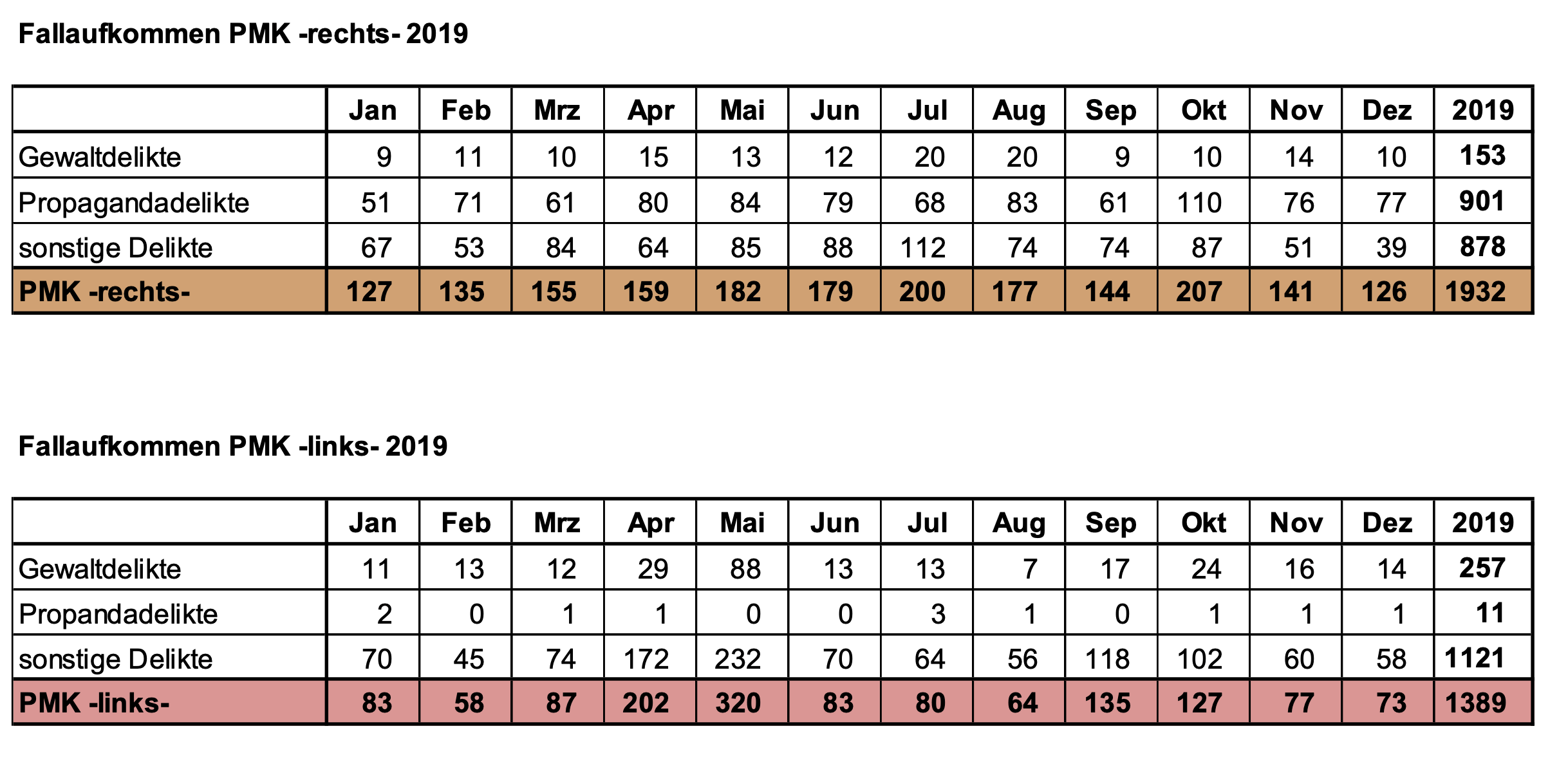 Die gesamte Antwort auf die Anfrage Luthes finden Sie hier. Das Dokument belegt auf anschauliche Weise, wie mit der Statistik zur politisch motivierten Kriminalität Stimmung gemacht und manipuliert wird. Besonders bitter ist, dass viele Medien genau diese Stimmungsmache und Manipulation übernehmen, statt sie zu hinterfragen, wie es ihre Aufgabe wäre.PS: Kurz nach Verfassen dieses Beitrag bekam ich den Hinweis, dass nach einer großen Gefahrenanalyse Linksextreme radikaler werden: Die Antifa soll demnach Anschläge auf Polizisten vorbereiten.