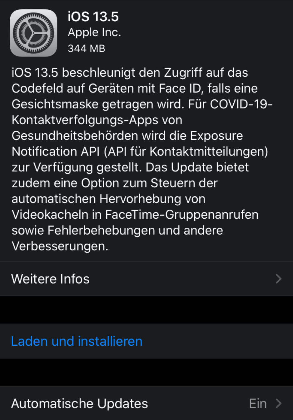 Erst nach dieser wichtigen Information ist bei Techbook über die Kontaktverfolgungs-API zu lesen, die automatisch installiert wird: „Apple und Google stellen jedoch sicher, dass nur offizielle Behörden tatsächlich Zugriff auf das Interface haben, damit sensible Daten nicht an Dritte gelangen.“ Das Wort der Kollegen in Gottes Ohr.