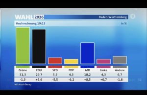Trotz dieser Diagnose muss man aber auch konstatieren, dass immer noch fast jeder Dritte in Baden-Württemberg die Partei wählte, die nicht nur eine beispiellose Schmutzkampagne gegen ihren politischen Kontrahenten losgetreten hat (siehe hier), sondern die vor allem maßgeblich für den Niedergang Deutschlands verantwortlich ist. Die Gründe dafür kann wohl ein Psychologe besser erklären als ein Journalist. Ich selbst sehe Realitätsverweigerung, Wunschdenken und den Versuch, sich mit dem Wahlkreuz moralisch rein zu waschen, als Haupt-Ursachen – neben der durchsichtigen, aber offenbar dennoch erfolgreichen Strategie von Cem Özdemir, sich von der eigenen Partei zu distanzieren. Das Wählergedächtnis ist kürzer als der Abstand zwischen Wahlkampf-Versprechen und Wortbruch.