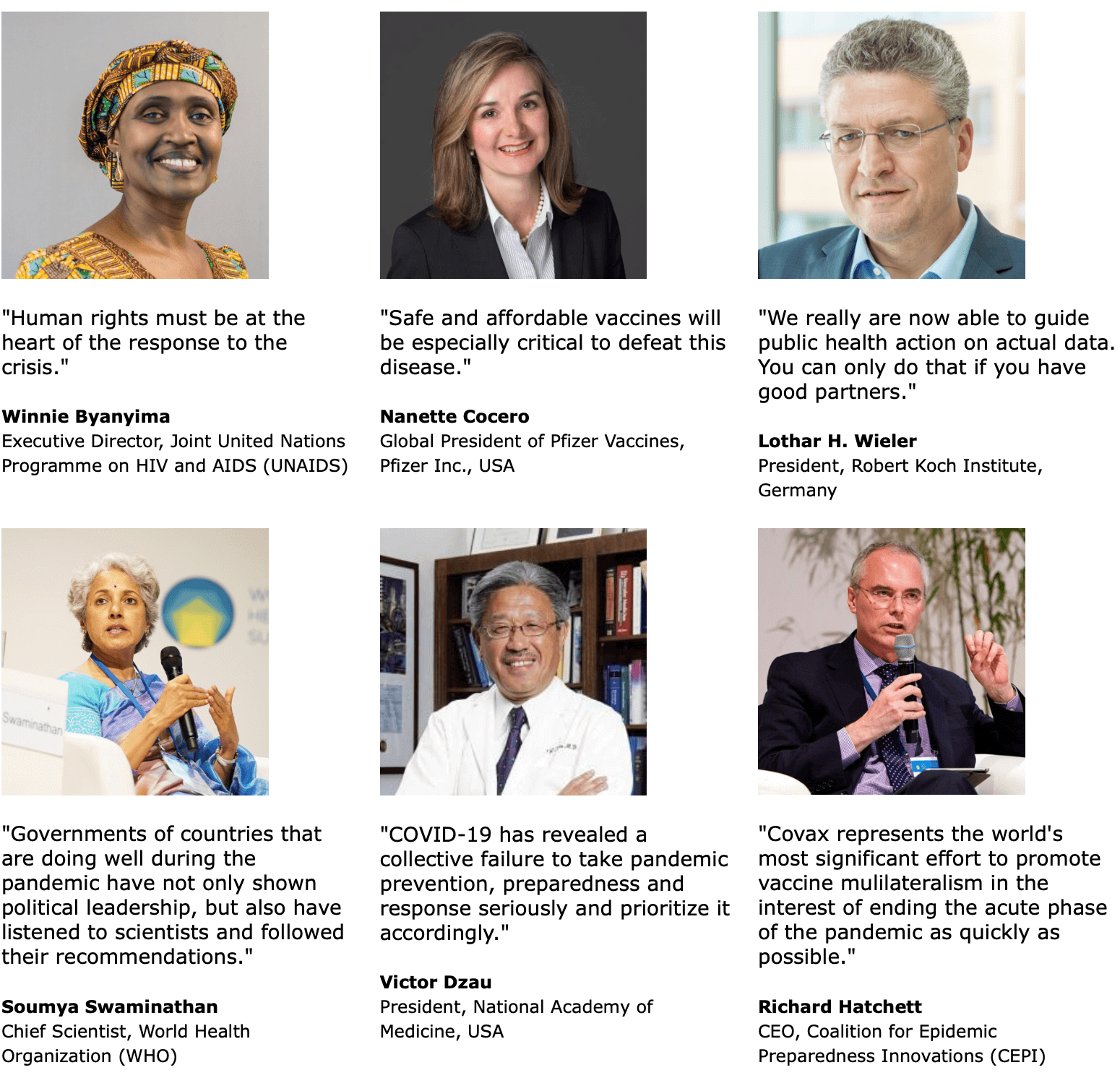 Eigentlich ist es nur eine, die von Victor Dzau, der auf das komplette Fehlen von Prävention, Vorsorgeplänen und einer ernsthaften Antwort in der Anfangsphase der Pandemie verweist. In dieser Anfangsphase sind wir offensichtlich immer noch, weil ein schlüssiges Konzept global weiterhin fehlt.