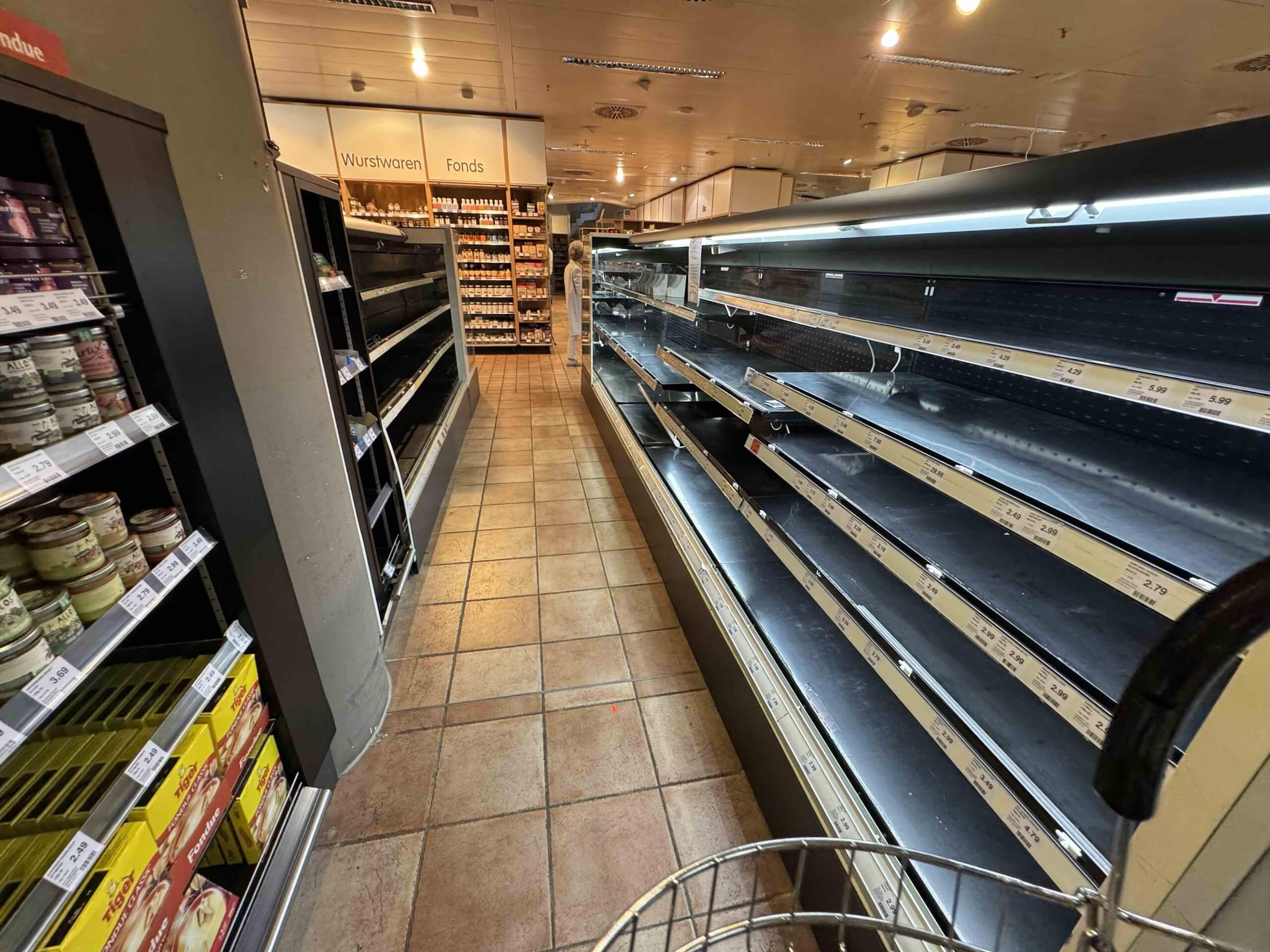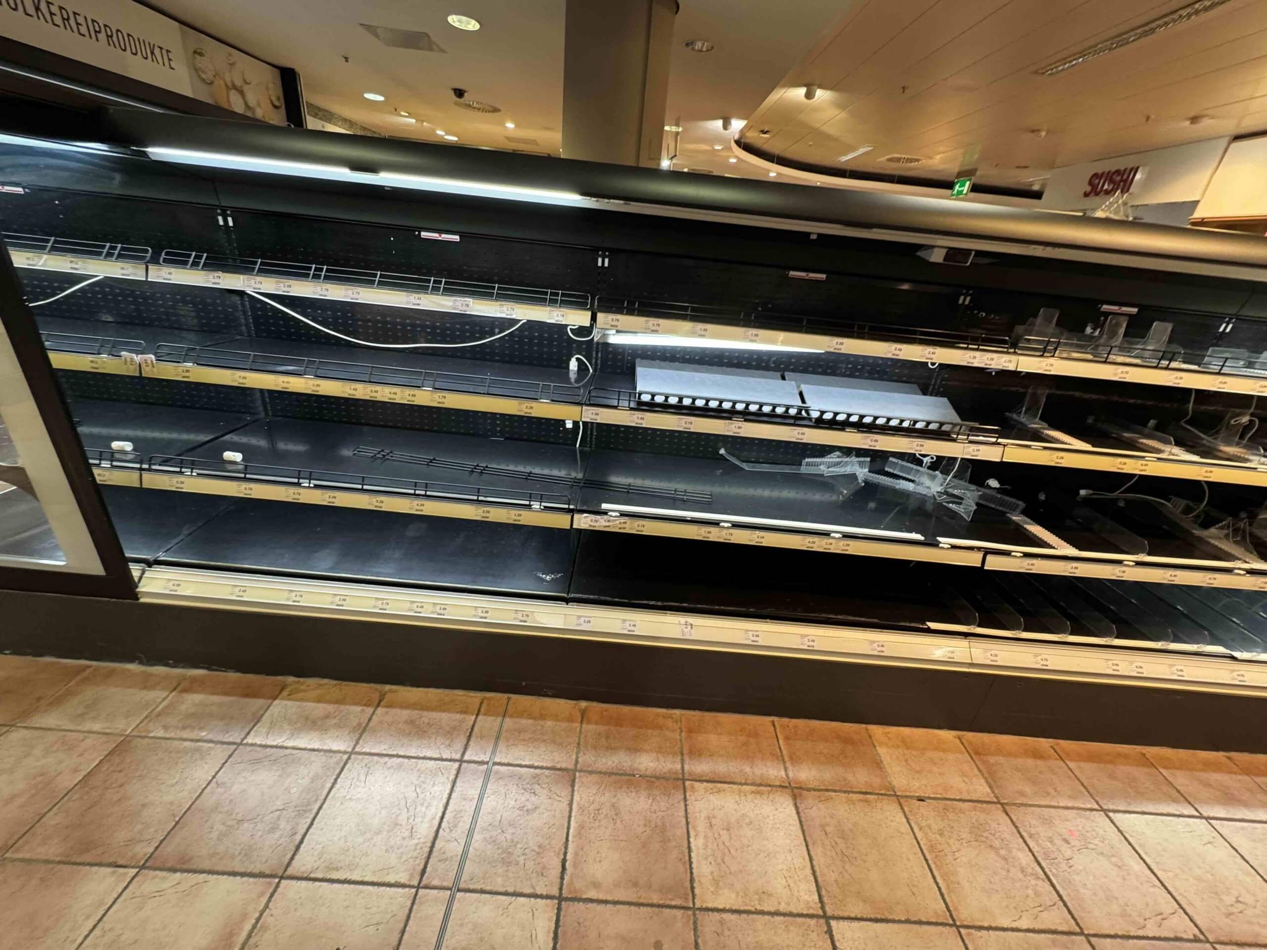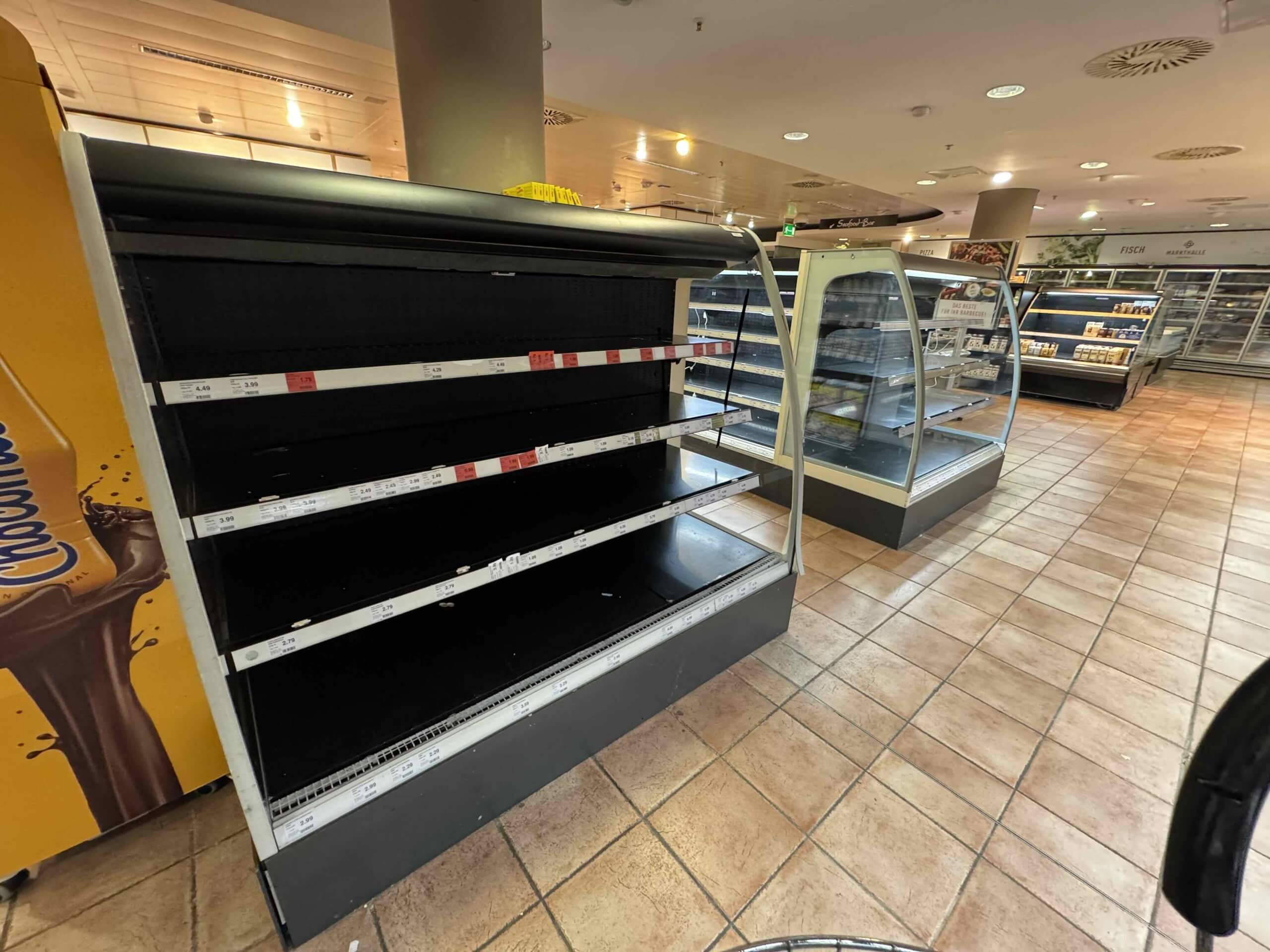 Ich staunte nicht schlecht, wie „nackt“ die Regale waren. Fast alle Kühlaggregate sind ausgefallen – und man möchte gar nicht glauben, wie viele es davon in einem Supermarkt gibt. Wohin man blickte – gähnende Leere.