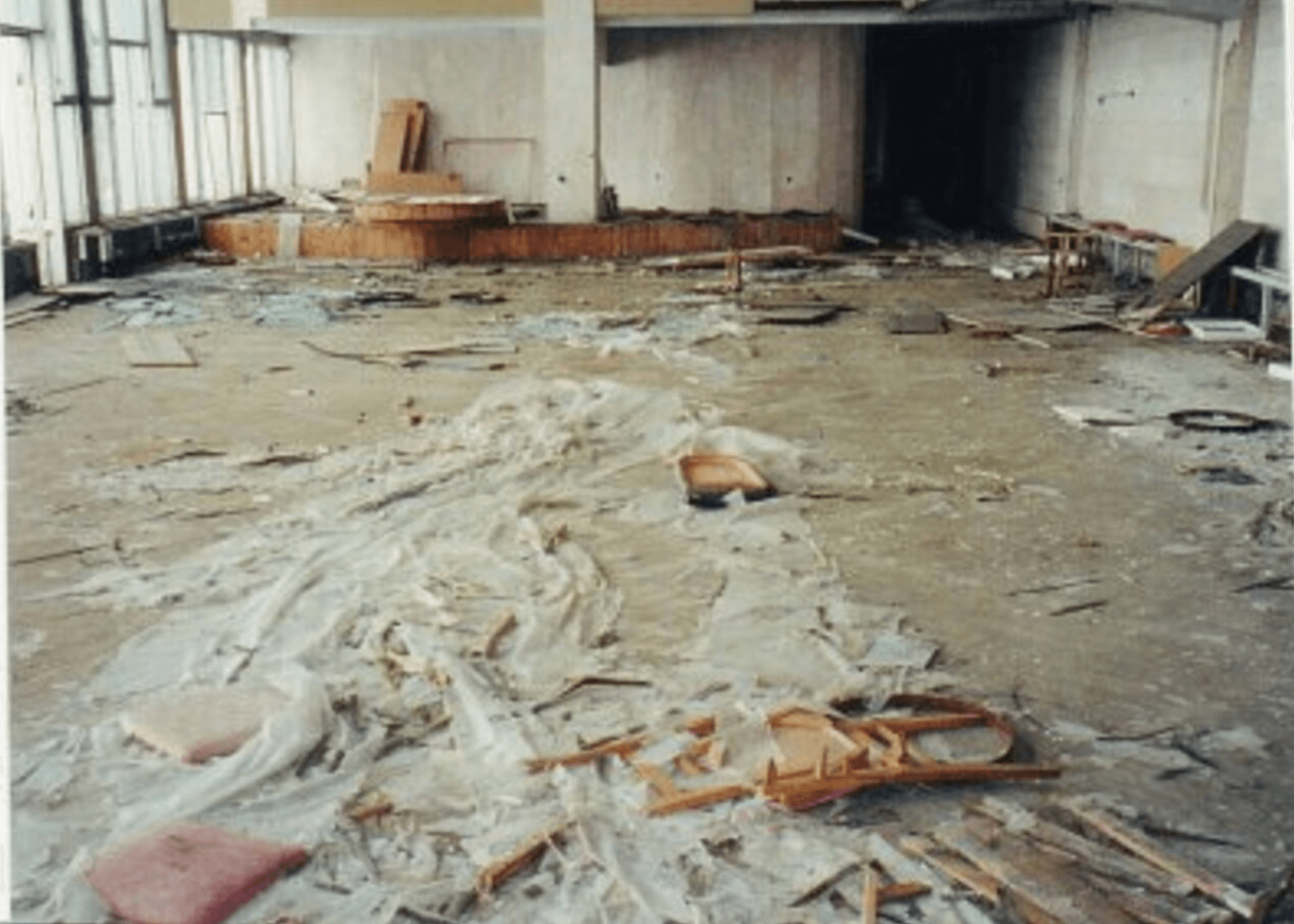 Links eine Wand. Mit jedem Meter wird sie schiefer, neigt sich immer mehr nach rechts. Als ob sie jeden Moment einbrechen könnte. Oben wölbt sich das Dach. Wasser tropft herunter. Ein gespenstischer Klang in der Stille. Weiter vorn ein gewaltiger Betonpfeiler, der das Dach halten soll. Er ist eingeknickt. Ganz oben, wo er das Dach berührt, ein Riss. Handbreit. 50 Milliröntgen auf dem Dosimeter. Kaschtanow ist das Lächeln vergangen: „Jetzt aber schnell raus hier.“
