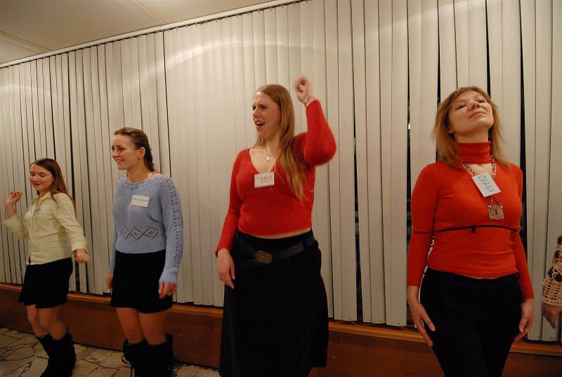 Obwohl von der Statur her eher ein Bär, steht Rakowskij einer Katze in nichts nach in der Kunst, eine einmal gefangene arme Maus bis zum äußersten zu triezen. „Fragen wir doch unser Objekt selbst“, fuhr er fort: „Erzählen Sie uns, was Sie gefühlt haben?“. Einhundertsechs weibliche Augenpaare starrten mich gebannt an – die von den beiden Nataschas und Schenja mitgezählt. Ich wusste: Wenn ich jetzt etwas Falsches sage, könnte der Abend sehr unromantisch enden. „Es war eine sehr interessante Erfahrung…“, stammelte ich. Rakowskij machte keinerlei Anstalten, mich zu erlösen und selbst das Wort zu ergreifen. „Und die drei Damen sind ausgesprochen charmant…“ Rakowskij ließ mich weiter zappeln. Doch ich bäumte mich auf: „Aber hier in der Schule geht es doch ums Anbandeln. Und ich glaube, was die drei Damen hier zeigten, ist nicht der richtige Weg, um etwa in der Metro einen Mann auf sich aufmerksam zu machen.“