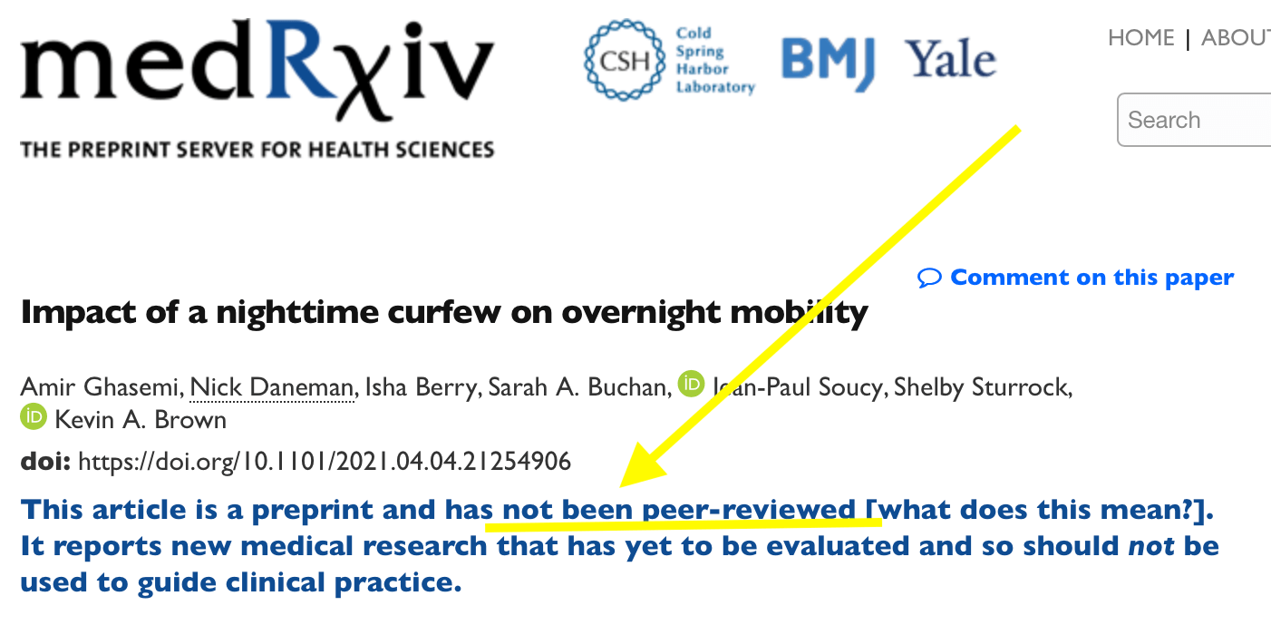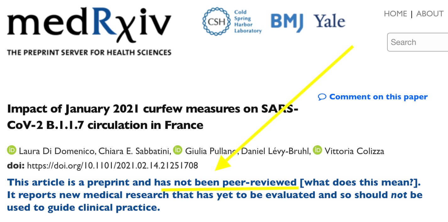 Das Wortgefecht im Saal der Bundespressekonferenz am Berliner Schiffbauerdamm hatte dann noch ein erstaunliches Nachspiel. Gülde verwies ja auf „wissenschaftliche Studien“, die die Wirksamkeit von nächtlichen Ausgangssperren belegen. Ein aufmerksamer Leser schickte mir einen Link auf eine Seite des Gesundheitsministeriums. Auf der Seite mit dem Titel „Fragen und Antworten zum 4. Bevölkerungsschutzgesetz“ steht: „Ab einer 7-Tage-Inzidenz von über 100 sind Ausgangsbeschränkungen ein wichtiges Mittel, um das Infektionsgeschehen effektiv einzudämmen. Eine Vielzahl wissenschaftlicher Studien unterstützt diesen Befund (Verlinkung Studien). Eine Verlinkung gibt es an der besagten Stelle nicht, dafür werden weiter unten unter der Überschrift „wissenschaftliche Studien“ drei solche aufgeführt – und auch verlinkt. Folgt man den Links, stellt sich allerdings heraus: Keine einzige dieser Studien hat einen Überprüfungsprozess bestanden. Sie sind allesamt nicht „peer reviewed“. Und damit nicht wissenschaftlich fundiert. Dass die Regierung hier so tut, als handle es sich um vollwertige wissenschaftliche Studien, könnte man bösartig auch als Etikettenschwindel bezeichnen. Ein befragter Wissenschaftler äußerte sich vorsichtiger und sprach von einem „unlauteren“ Vorgehen. Denn bis zur Überprüfung handelt es sich eher um Diskussionspapiere.