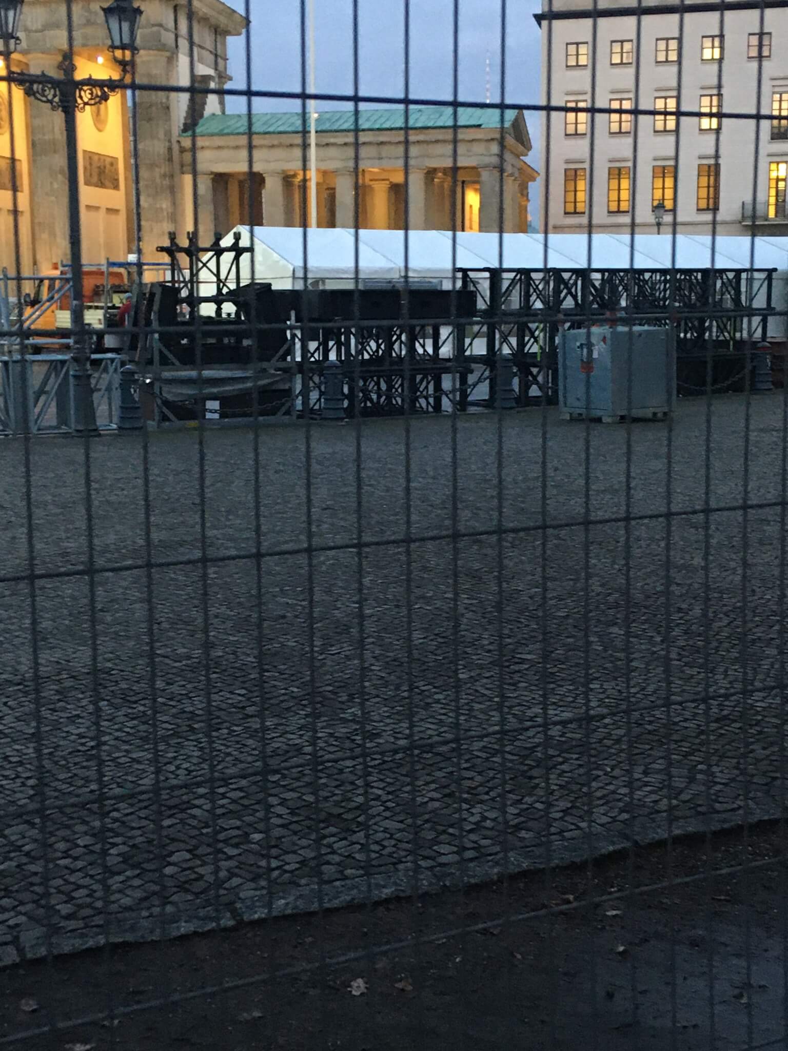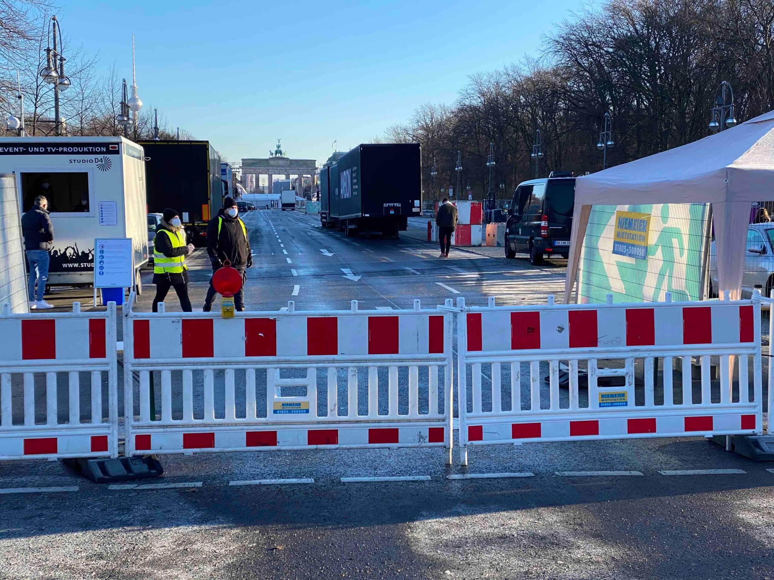 Das Produktionsgelände rund um das Brandenburger Tor ist weiträumig abgesperrt.