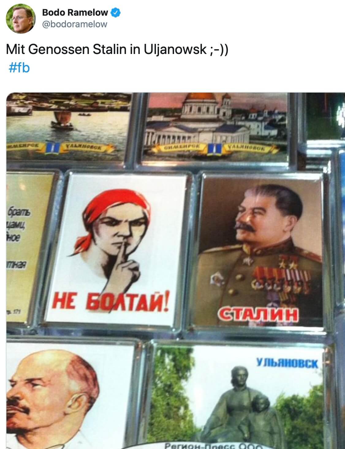 Auslöser für die Blockade war ein kurzer Text von mir zu einem Tweet von Ramelow aus dem Jahr 2012 – den er mittlerweile offenbar gelöscht hat, und in dem er kaum verhohlen Sympathien für den Politiker äußerte, der zu den größten Verbrechern der Geschichte gehört und Millionen Menschen auf dem Gewissen hat: Josef Stalin.