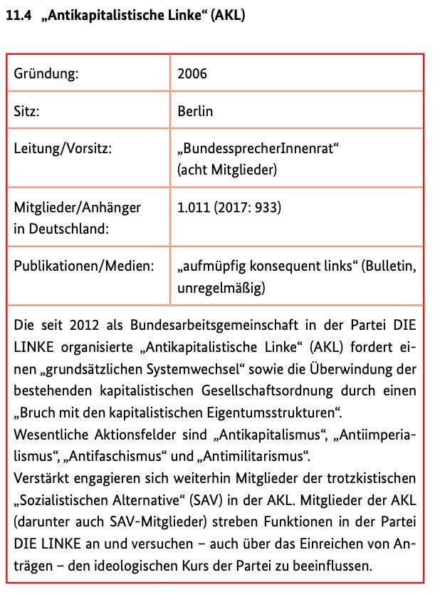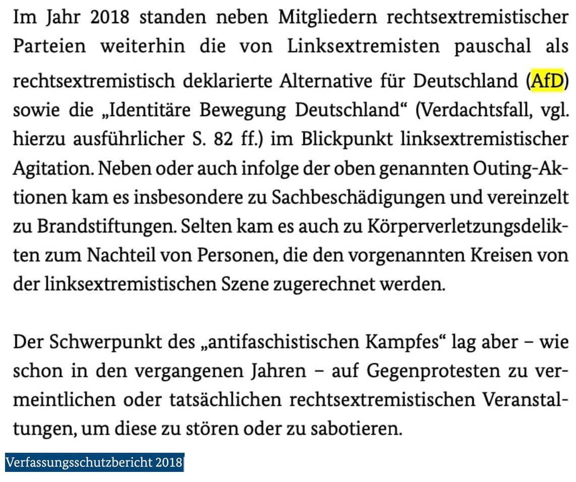 Bezeichnend ist, dass bei all den massiven, allgegenwärtigen Versuchen, die „Linke“ als neue Partei der Mitte und als sozialdemokratisch hinzustellen, regelmäßig verschwiegen wird, was für unappetitliche linksextreme Gruppen unter dem Mantel der Linken agieren. Der Verfassungsschutzbericht führt sieben auf – die AfD dagegen nur wegen Angriffen von Linksextremen auf sie. Dass die linksradikale Seite der „Linken“ in den Medien kaum thematisiert wird, ist ein Systemversagen und zeigt, wie weit sich viele von ihnen von ihrer Rolle als Wärter der Demokratie entfernt haben.
