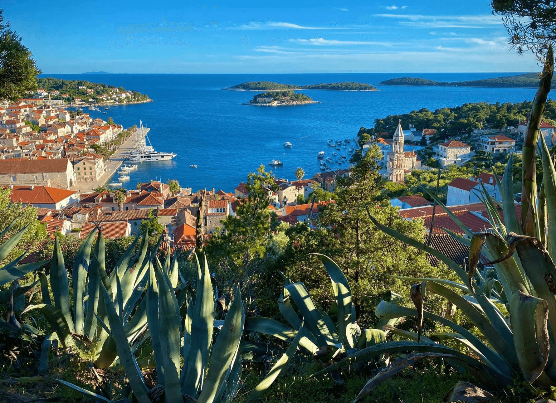 Wir haben die Pläne geändert – und uns für noch eine Woche Exil entschieden. Nun führen wir nicht nur im sprichwörtlichen Sinn ein Inseldasein: Dem sonnigen, entrückten Eiland Hvar haben wir uns ergeben – hier sind wir freiwillig gestrandet. Schon morgens, beim ersten, noch verschlafenen Blick über die Brüstung der Terrasse, wölbt sich der tiefblaue Himmel über das kleine, uralte Hafenstädtchen, dessen Gassen, Türme und schneeweiße Steinfassaden uns nach bereits einer Woche schon vertraut und heimelig geworden sind. Der Wohlklang der Glocken, die ersten Laute von Geschäftigkeit, das Gelächter der Möwen, das Horn der ein- und auslaufenden Fähren gen Split bilden eine fast hypnotisierende Klangkulisse, die den visuellen Genuss der vor uns ausgebreiteten Schönheit zur Gänze vollendet. Alle Farben wirken transparent und fluoreszierend, die Luft ist wie aus Glas. Wäre ich Maler, könnte ich mich nicht von Pinsel und Leinwand trennen – aus solcherlei Unvermögen aber muß ich es beim Schreiben belassen.