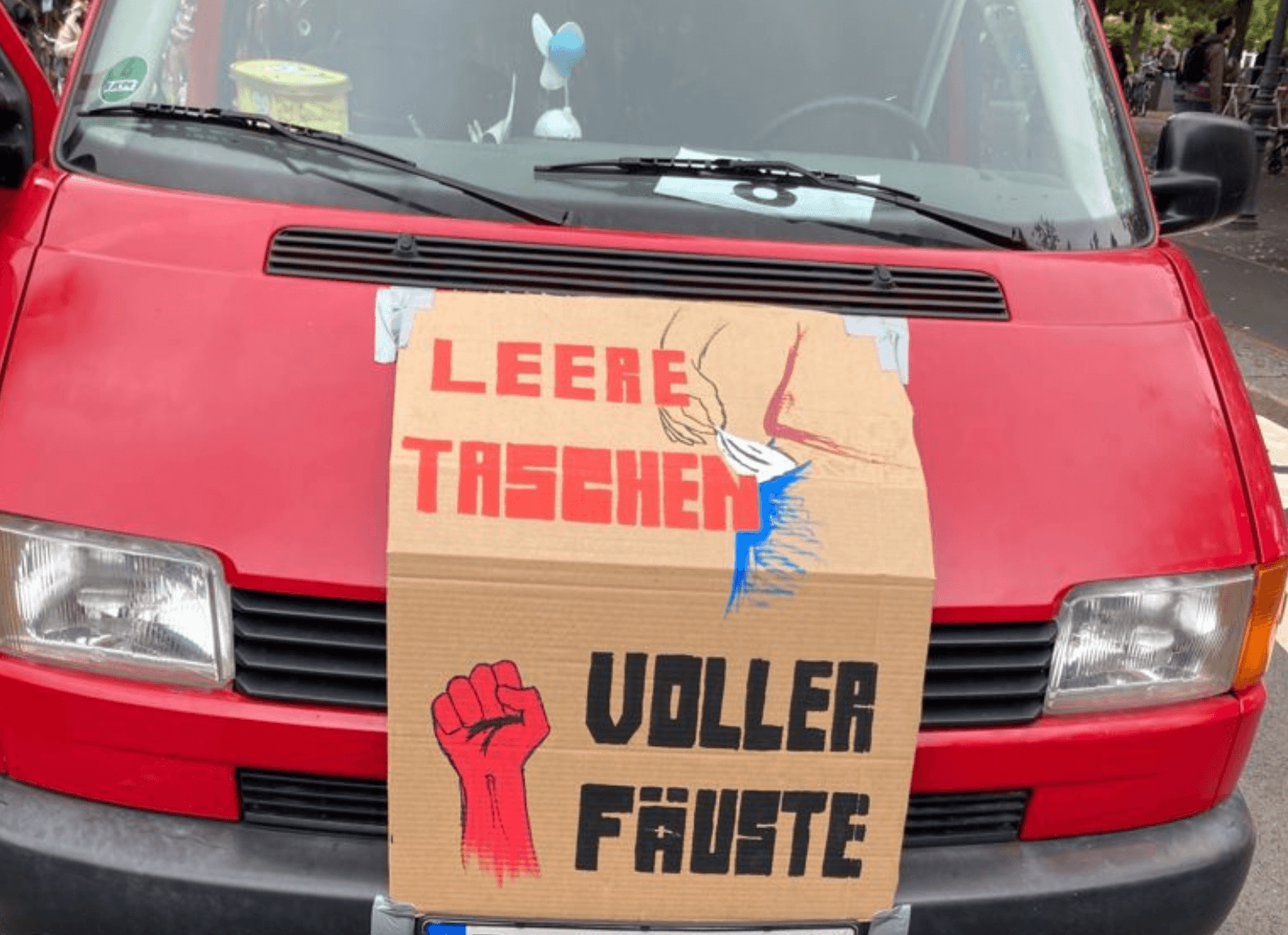 „Leere Taschen – Voller Fäuste“ steht auf einer Kartonpappe von Amazon, die Polizei langweilt sich hier zu Tode. Was #unteilbar hier erreichen wollte, ist ins Gegenteil gekippt, was eine Machtdemonstration werden sollte, wurde zur Pleite – mangels Interesse. Was die zentrale Wahlveranstaltung für Rot-Rot-Grün werden sollte, könnte sogar diesem traurigen #teamlaschet wieder Aufschwung geben.