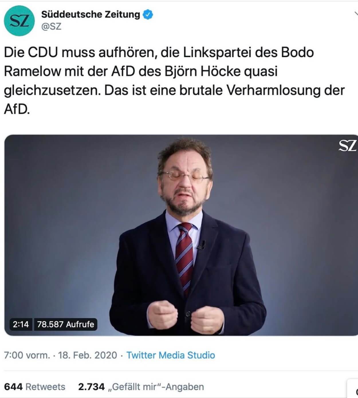 Nicht nur an Schulen etwa in Berlin läuft das Weißwaschen der SED-Diktatur und der Partei, die für sie verantwortlich war, auf Hochtouren. Jüngstes Beispiel: Heribert Prantl, Aushängeschild der Süddeutschen Zeitung. Die Gleichsetzung der Linkspartei mit der AfD sei eine Verharmlosung der AfD, schreibt er da. Auf so etwas muss man erst einmal kommen: Die Diktaturpartei, die für unzählige Morde verantwortlich ist und die sich nie überzeugend von ihrer Vergangenheit distanzierte, von der sieben Gruppen vom Verfassungsschutz beobachtet werden, die immer noch Sozialismus als ihr politisches Ziel im Programm hat, bei der Bodo Ramelow erst vor kurzem wieder die Opfer der SED-Diktatur verhöhnte (siehe hier) und die sich freundlich zu Stalin äußerte – diese mit der AfD (die übrigens im Verfassungsschutzbericht überhaupt nicht erwähnt ist) gleichzusetzen, verharmlost letztere? Da sind nicht nur alle Maßstäbe verrückt, da wird auch versucht, dem Leser den Kompass zu verstellen.