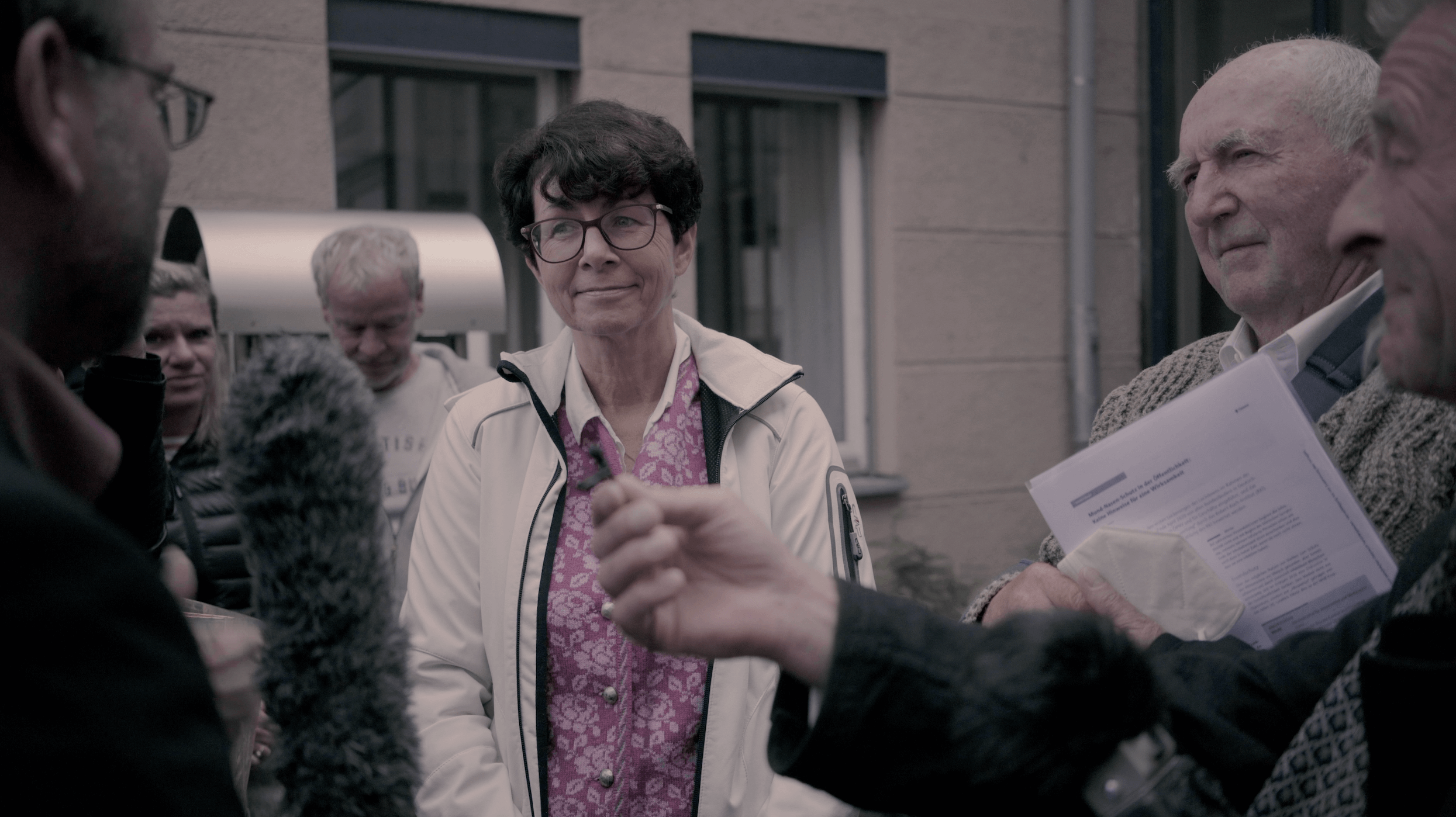 Stammgäste und Unterstützer draußen vor dem Gericht wollen spontan Geld sammeln und es der Fischerwirtin spenden. „Das ist rührend“, sagt die Wirtin, „doch es geht mir nicht ums Geld“.