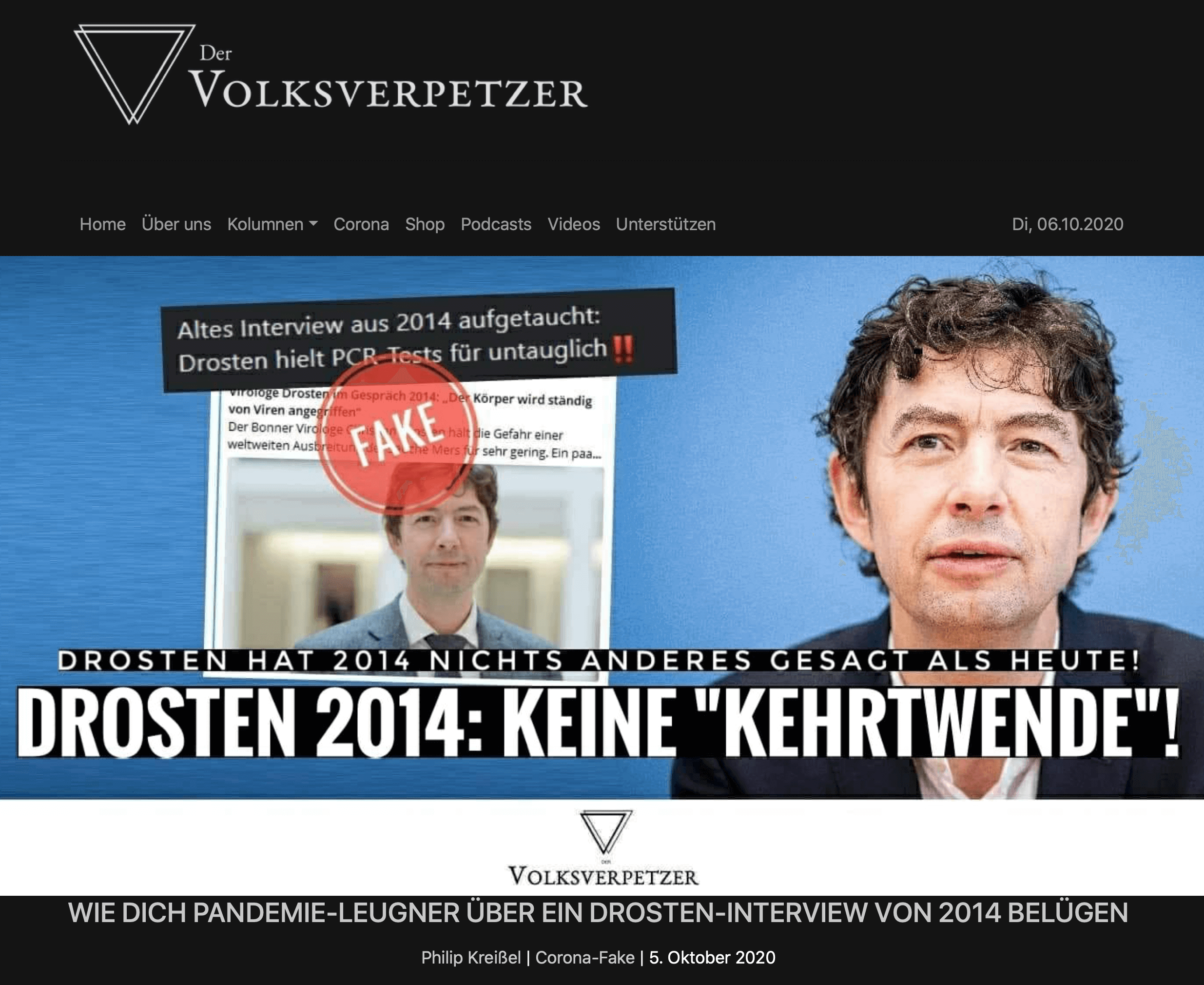 Was für eine geschickte und dreiste Manipulation. Neudeutsch heißt das Framing. Dabei ist die Methode vor allem aus sozialistischen Propaganda-Schulen bekannt: Behauptungen aufstellen, die gar nicht gefallen sind, und die dann widerlegen. Nebenaspekte ins Zentrum stellen, um die es gar nicht geht, und dann alle Aufmerksamkeit auf die lenken. Die zentrale Frage ist nicht, ob Drosten „seine Meinung“ ändert. Das tun kluge Leute oft. Und zu Recht. Die zentrale Frage ist, ob die Berichte zutreffen, dass Drosten 2014 noch erhebliche Zweifel an den PCR-Tests hatte. Man muss den „Faktenfinder“-Text bis zum Ende durchlesen und sehr aufmerksam sein, um zu verstehen: Ja, das war so. Die Mehrzahl der Leser ist aber eilig. Sehr viele lesen nur die Überschrift, und gerade noch den Vorspann. Wer das in diesem Beitrag tut – bei dem dann oben auch noch groß prangt „Der ARD-Faktenfinder untersucht Gerüchte und stellt gezielte Falschmeldungen richtig“, bei dem wird hängen bleiben: Auch wieder Fake-News, dass Drosten die PCR-Tests kritisierte.