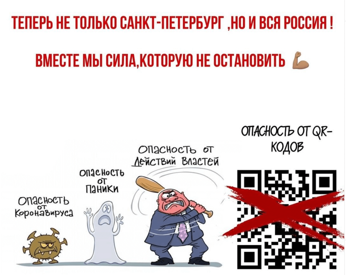 Diese Art des zivilen Ungehorsams nahm eine rapide Entwicklung an und es bildete sich unmittelbar nach der Einführung der Regel eine Protestbewegung namens „QR-Widerstand“, der sich bereits Anfang Januar 69 Cafes, Bars, Kaffeeshops, Restaurants und anderen Unternehmen anschlossen. Mittlerweile nehmen am „QR-Widerstand“ 176 Unternehmen teil. Auf der Seite www.qr-code.net (ein Wortspiel: „Nein“ heißt auf Russisch „Net“) kann man nicht nur die Liste mit den „QR-freien Unternehmen“ finden, sondern bei Wunsch auch sein eigenes als solches eintragen.