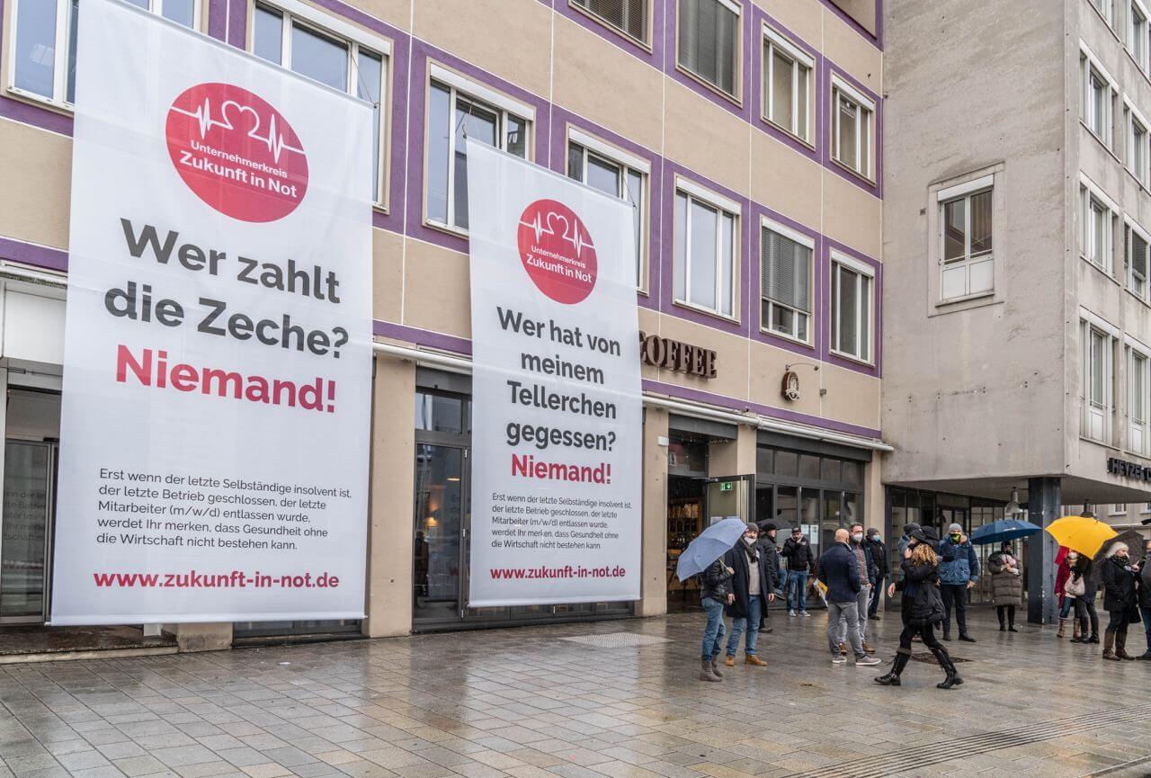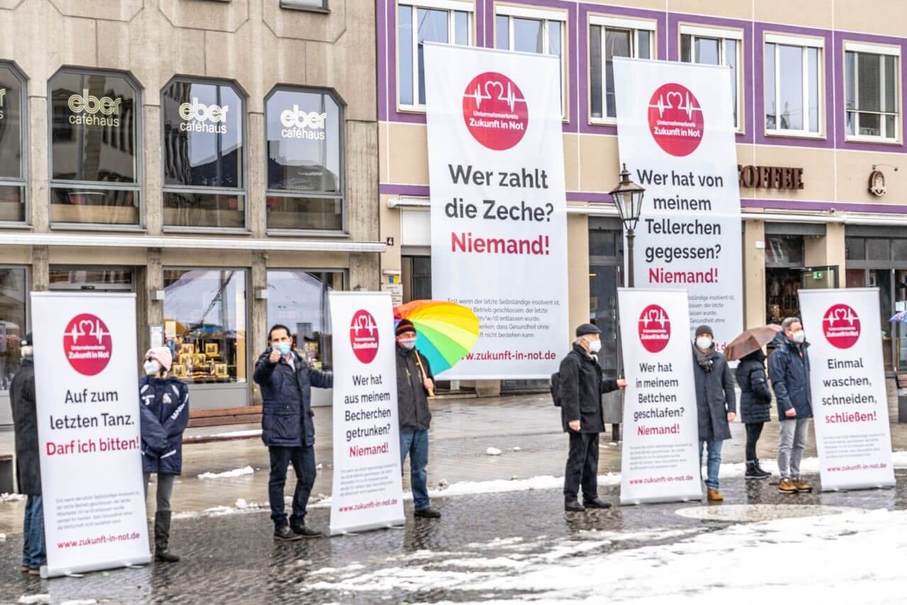 Überraschenderweise haben sich unabhängig voneinander und zur gleichen Zeit zwei Unternehmerkreise in unserer Region gebildet. Eben das Illertal/Unterallgäu und die Gruppe Weißenhorn/ Ulm. Per Zufall sind die beiden Gruppierungen bei einer Aktion auf sich aufmerksam geworden und haben sich sofort vernetzt. Diese Vernetzung geschieht gerade mit teils atemberaubender Geschwindigkeit in ganz Deutschland. Die Idee an sich lag wirklich in der Not begründet es tun zu müssen. Es bleibt bei dieser von der Regierung leider kommunizierten Perspektivlosigkeit und dem Hangeln von Lockdown zu Lockdown einfach nichts anderes übrig als gemeinsam für eine Sache einzustehen. Die Unternehmen und Selbstständigen, gerade bei uns auf dem Land, kennen sich natürlich großteils und eine Vernetzung ist nicht sehr schwer.