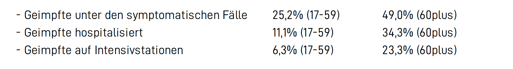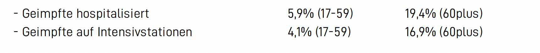 Am 10. September 2021 titelte die Deutsche Krankenhausgesellschaft (DKG): „Mehr als 90 Prozent der Intensivpatienten ungeimpft – Krankenhäuser unterstützen Impfkampagne der Bundesregierung“. Zehn Tage später berichtete MDR Sachsen „Mehr als 99 Prozent der Covid-19-Patienten in Krankenhäusern ungeimpft“.