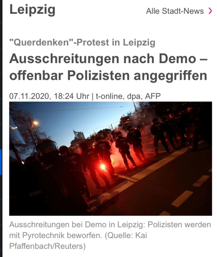 Warum ich das alles schreibe? Weil ich mich bei der Demonstration der Corona-Maßnahmen-Gegner von Querdenken gestern in Leipzig an meine Moskauer Erfahrung erinnert fühlte. Die Szenen der Gewalt, die ich dort erlebte, erinnerten mich massiv an meine Erlebnisse in Russland, aber auch in der Ukraine. Mit den Jahren entwickelt man ein Gespür dafür, wo die normale Demonstration endet und wo die Provokation anfängt. Dass diejenigen vermummten, gewaltbereiten Schlägertypen, die gestern in Leipzig für Gewaltszenen sorgten, und mir eine Flasche gegen den Kopf warfen, Provokateure waren – das scheint mir offensichtlich.