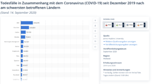 Wirklich aussagekräftig ist nur die Statistik, in der die Zahl der Todesfälle auf eine Million Einwohner bezogen wird. Und anders, als man aus vielen Medien den Eindruck bekommt, ist hier eben nicht die USA das am schlimmsten betroffene Land, wie hier bei Statista: